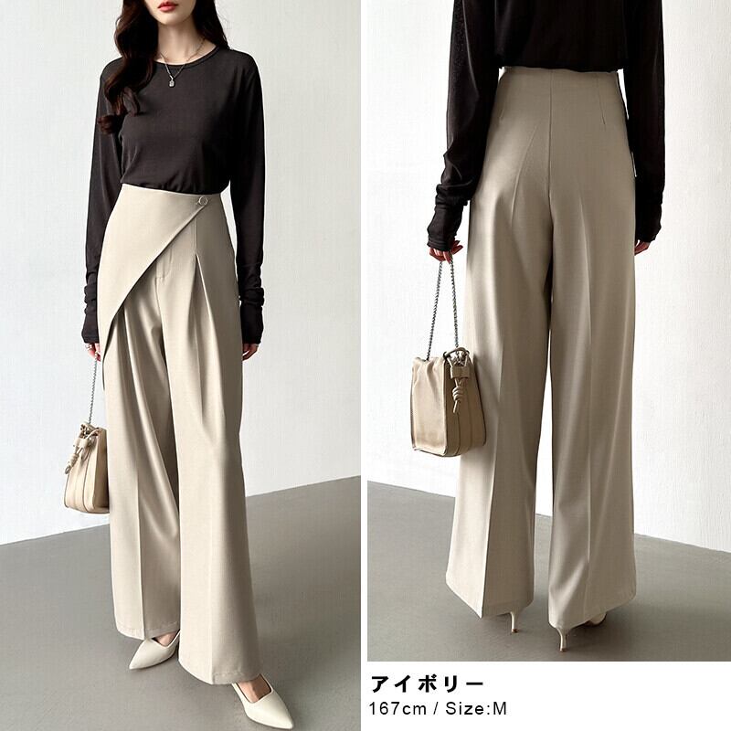 このラップパンツは、シンプルなトップスと合わせることで、さらに洗練されたスタイルを楽しむことができます。また、春夏のシーズンにぴったりな軽やかな素材感があり、心地良い着心地を実現しています。友人とのお出かけや特別なイベントに、ラップパンツで洗練されたひとときをお過ごしください!
