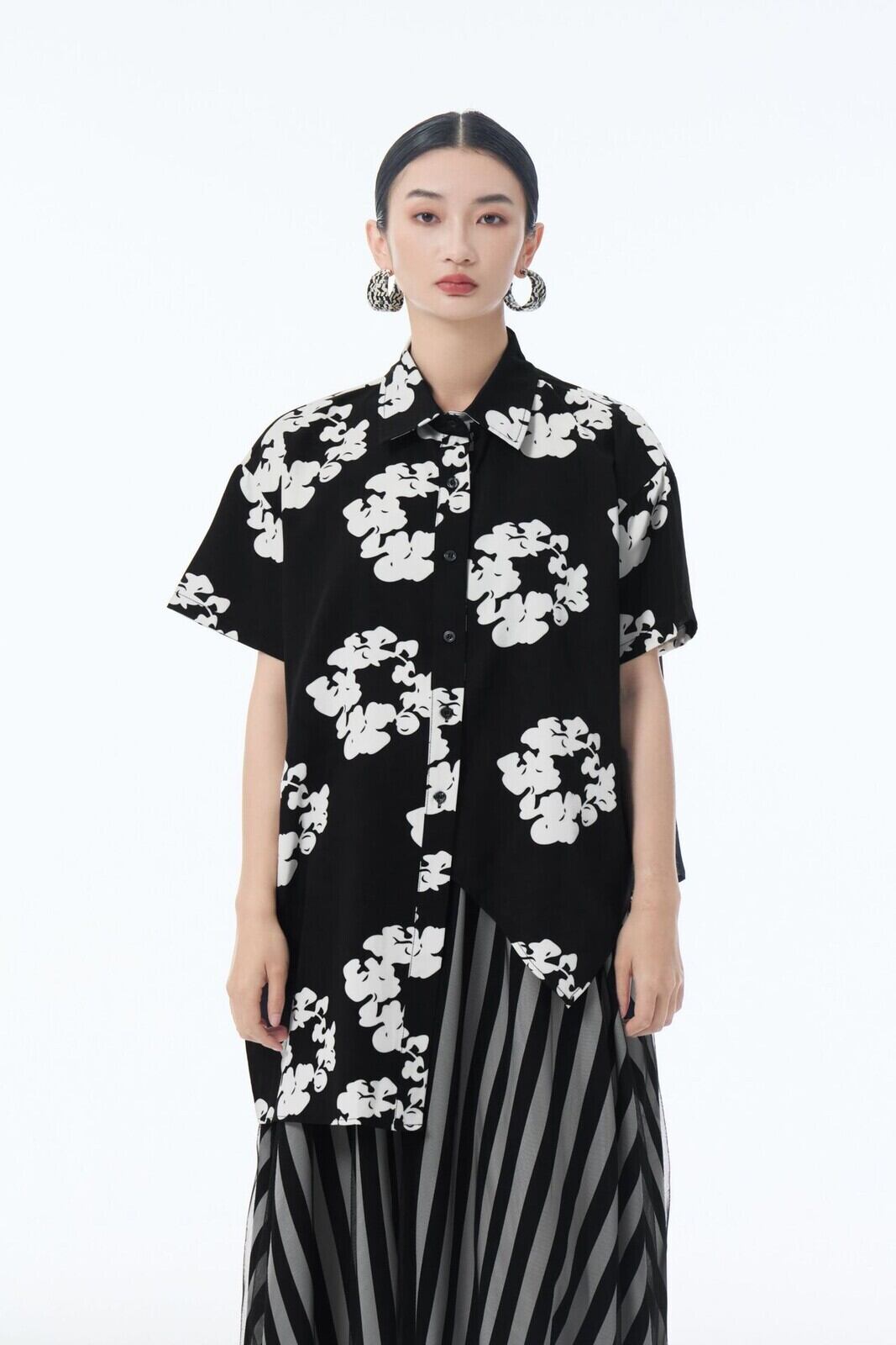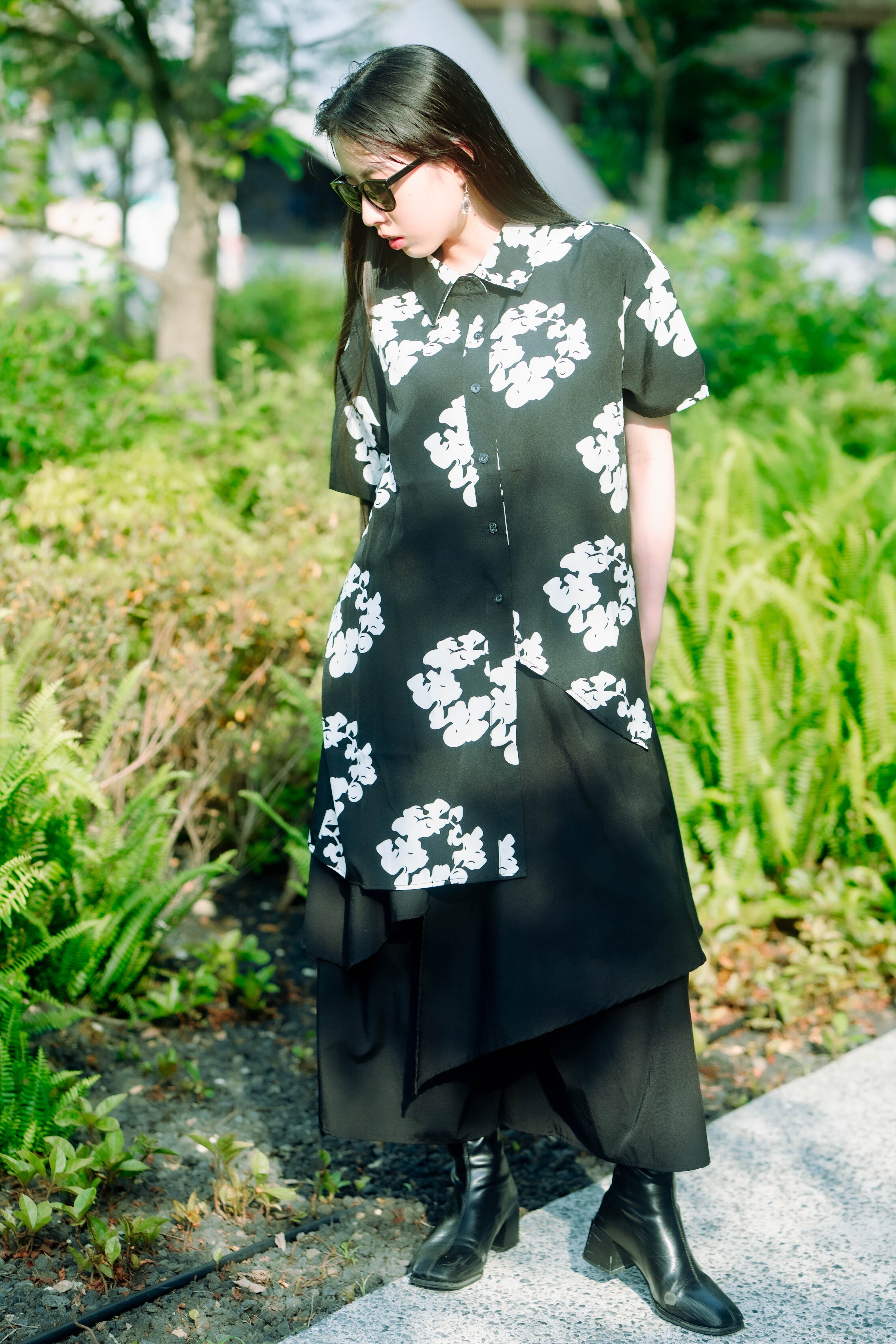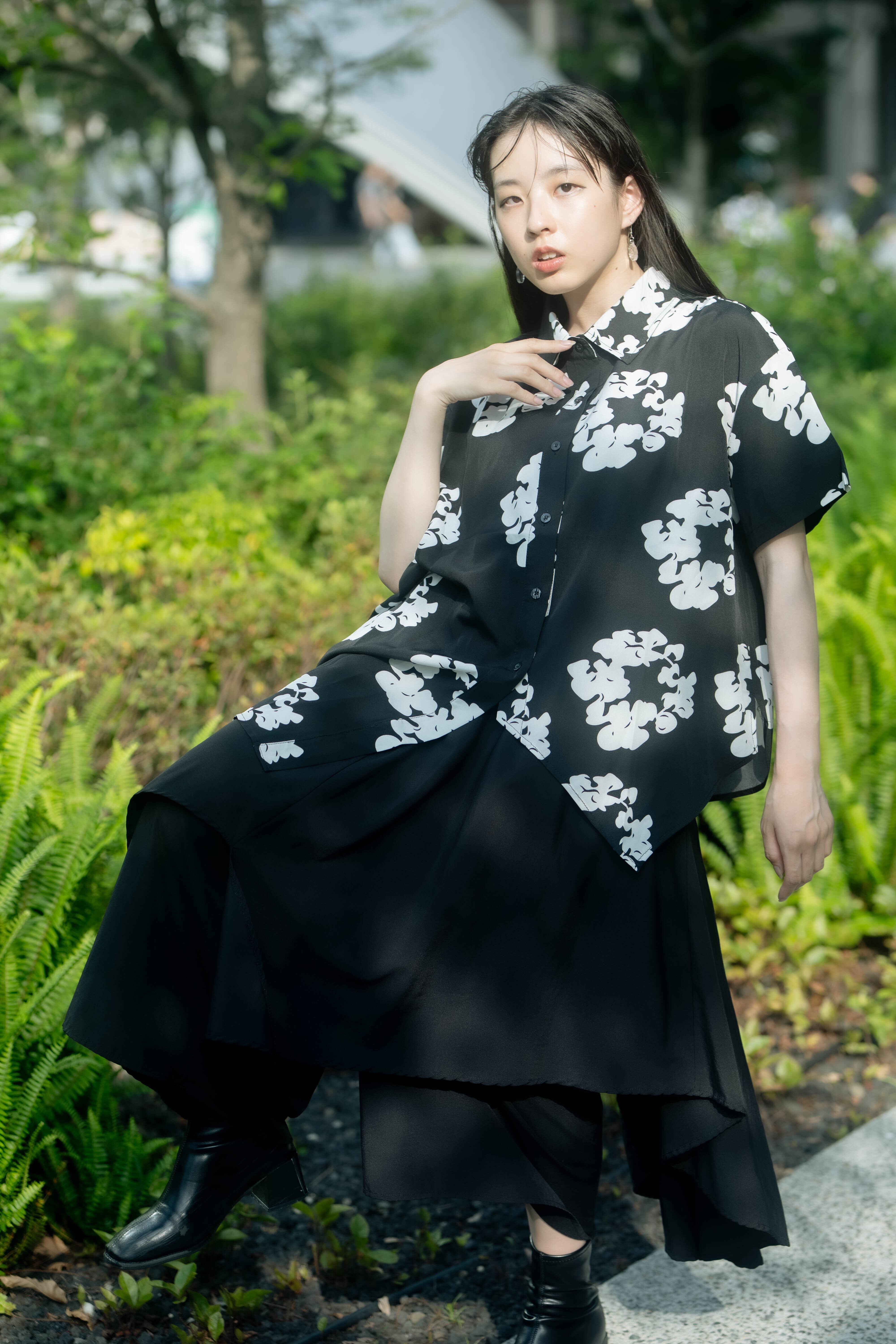 アンバランス切替シャツは、夏にぴったりなモード感あふれるシャツです。独特なアンバランス丈のデザインが、スタイリッシュでありながらもカジュアルな印象を与えます。このシャツは、軽やかで通気性の良い素材を使用しており、快適な着心地を実現しています。